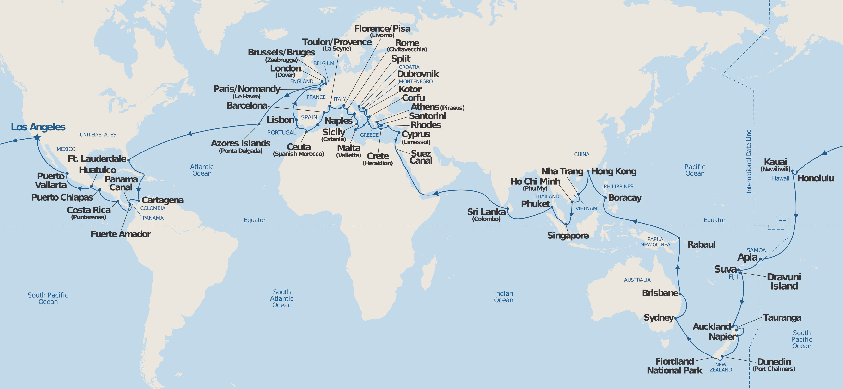 Most luxury cruise lines offer only one world cruise a year, and the best suites always go fast. Add to this the fact you will be leaving home for months at a time, and that requires some extra planning on your part. As expert travel advisors, we recommend booking as far in advance as possible since world cruise itineraries can be released up to two years ahead of their departure date.