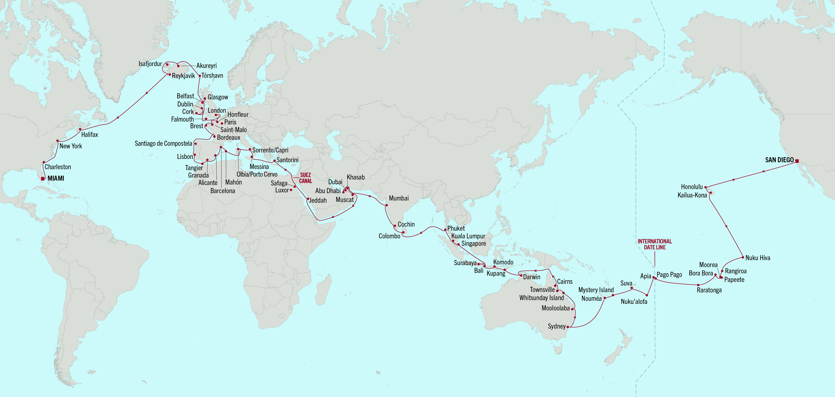 Most luxury cruise lines offer only one world cruise a year, and the best suites always go fast. Add to this the fact you will be leaving home for months at a time, and that requires some extra planning on your part. As expert travel advisors, we recommend booking as far in advance as possible since world cruise itineraries can be released up to two years ahead of their departure date.